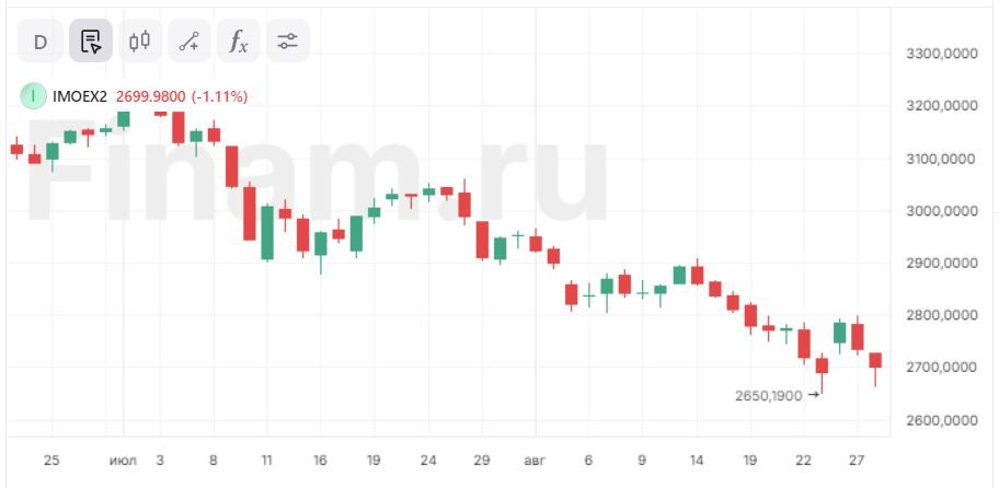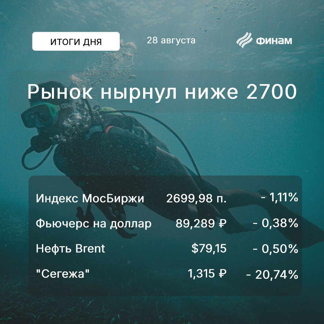 Российский фондовый рынок продолжил падение, на закрытии торгов среды индекс МосБиржи потерял 1,1%, спустившись до 2699,98 пункта. Индекс РТС просел на 1,1% — до 930,12 пункта.