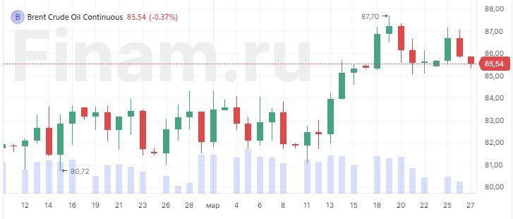 Нефть дешевеет на данных API о запасах в США: фьючерс Brent опускается на 0,87%, до $85,50 за баррель, цена WTI – на 0,77%, до $80,99. Согласно данным Американского института нефти, на 22 марта запасы сырой нефти в США увеличились на 9,337 млн баррелей, что стало максимальным ростом с середины февраля 2023 года. Вечером официальные данные опубликует EIA.