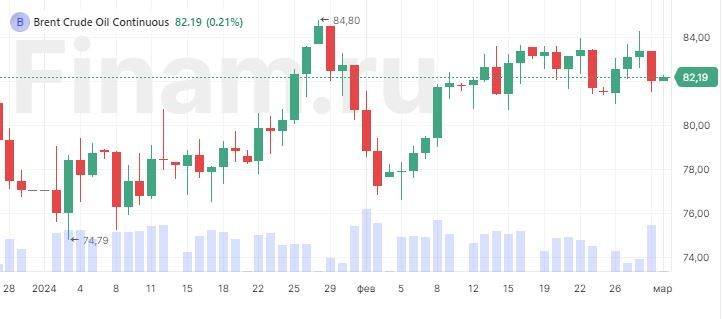 Нефть дорожает: фьючерс Brent поднялся на 0,34%, до $82,19 за баррель, цена WTI – на 0,28%, до $78,48. На котировки продолжают влиять конфликт на Ближнем Востоке и нападения хуситов в Красном море.