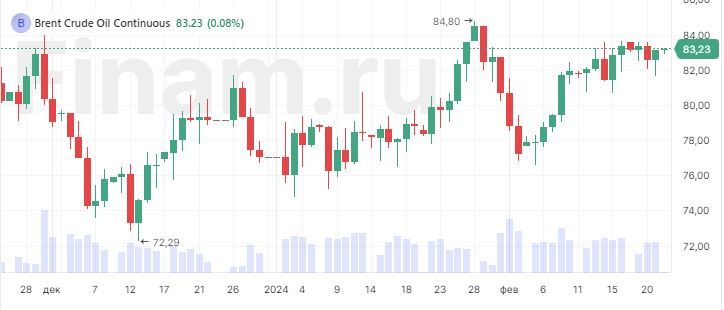 Нефть дорожает: фьючерс Brent поднялся на 0,25%, до $83,24 за баррель, цена WTI – на 0,27%, до $78,12. Покупателей поддерживают ожидания роста спроса, поскольку представитель ФРС США заявили о достижении процентными ставками своего пика.